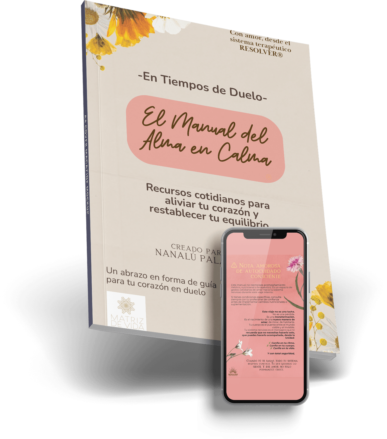 Descarga o envía El Alma En Calma, un manual gratuito con pasos simples y profundos para empezar hoy mismo a devolver paz al cuerpo, claridad a la mente y alivio al corazón en medio del duelo.
